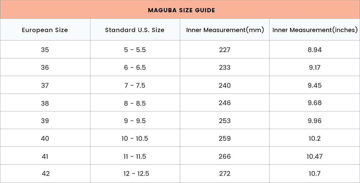 The width of the clogs and sandals made on a High, Mid or Low bottom usually fit well for a medium-to-narrow width foot. The models on the comfy bottoms are a bit wider and have a regular fit. In length our clogs are a bit longer in the sizes compared to many Italian and French brands. The lenght in mm for each size is as per the table above.